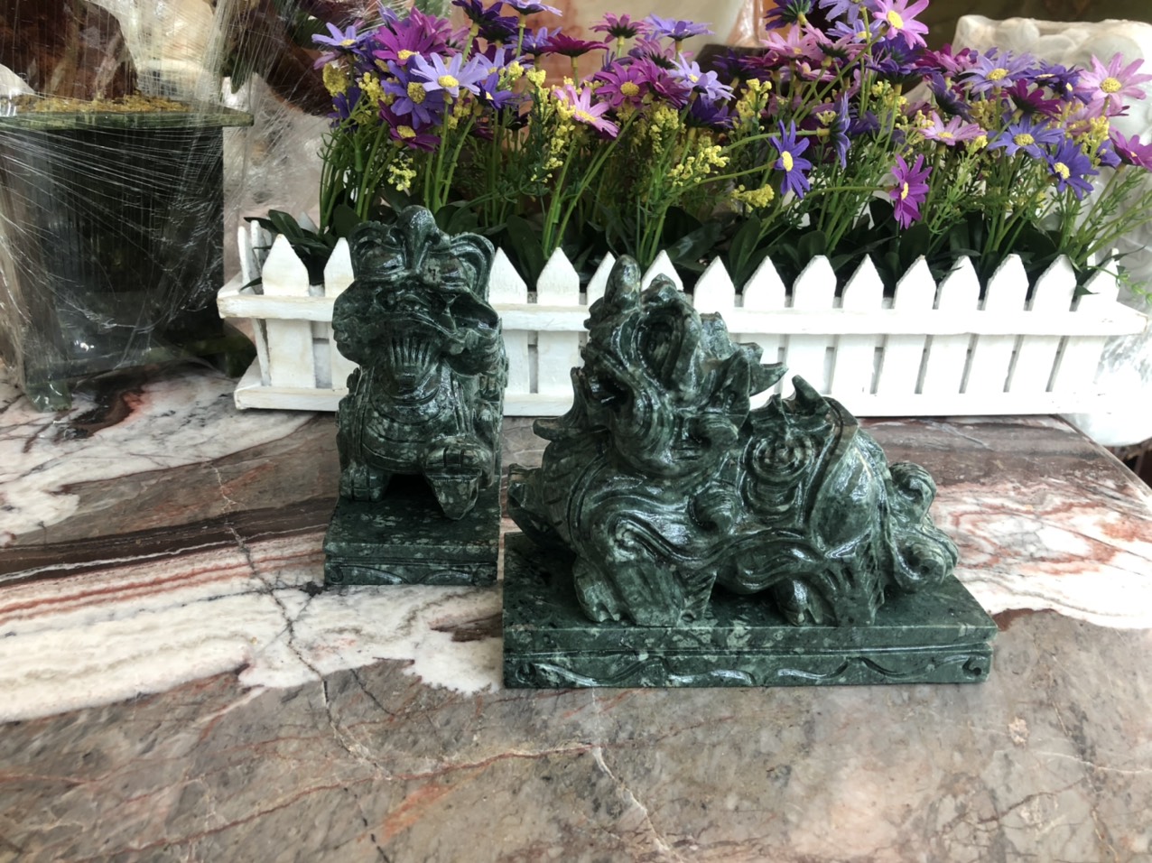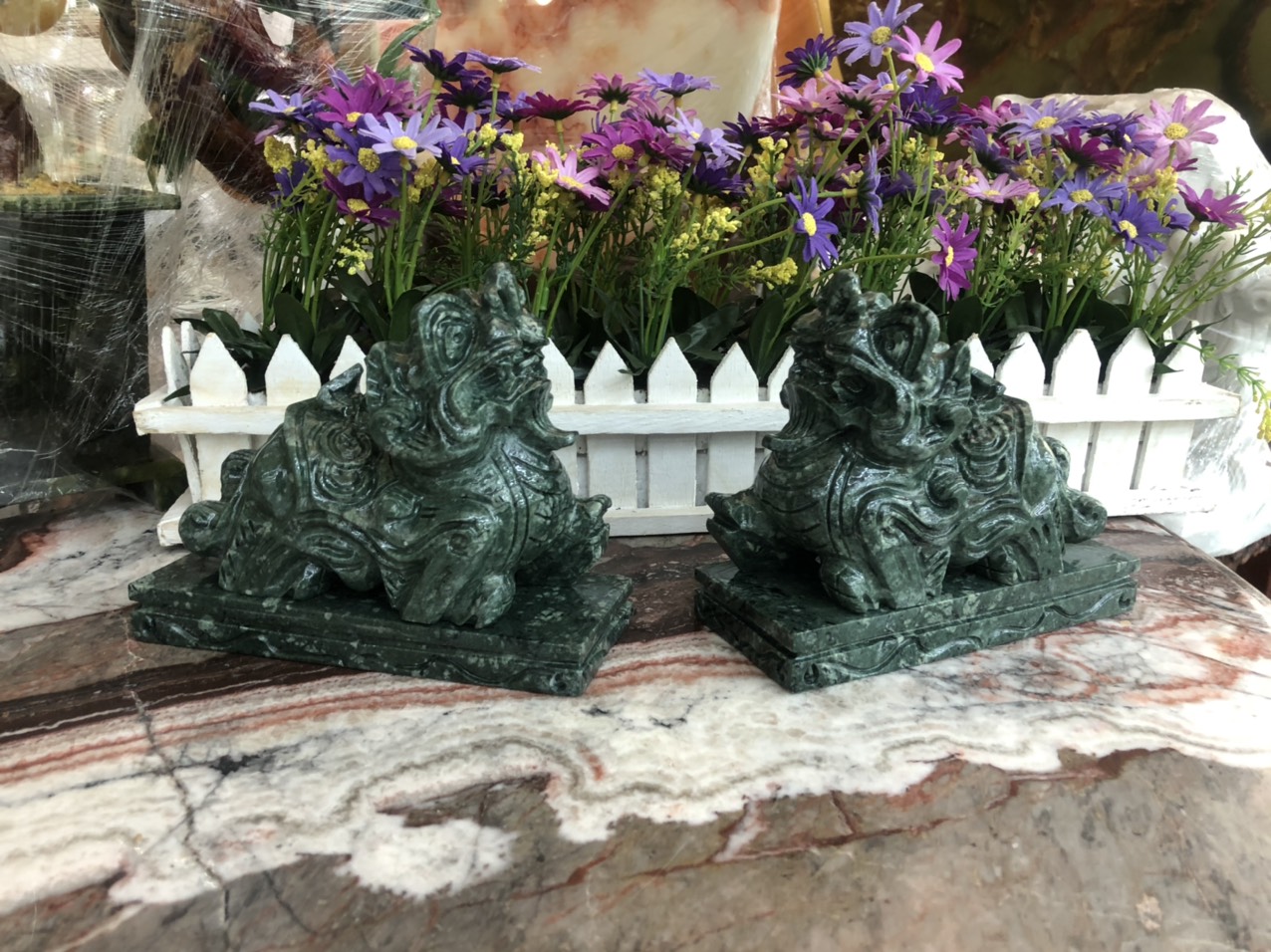 Cặp Tỳ Hưu Phong Thủy đá Ngọc Ấn Độ Có đế - Dài 15 Cm - Yêu Bếp