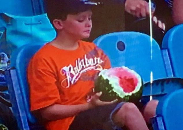 (Cadn.com.vn) - Cậu bé Mitchell Schibeci trở thành hiện tượng trên mạng sau khi ăn toàn bộ quả dưa hấu tại một trận đấu cricket lớn tại Melbourne, Australia. Mitchell ngay lập tức nổi tiếng với người hâm mộ và nhanh chóng được mệnh danh là “cậu bé dưa hấu”. Người hâm mộ dường như quan tâm đến cậu bé nhiều hơn so với kết quả trận đấu.