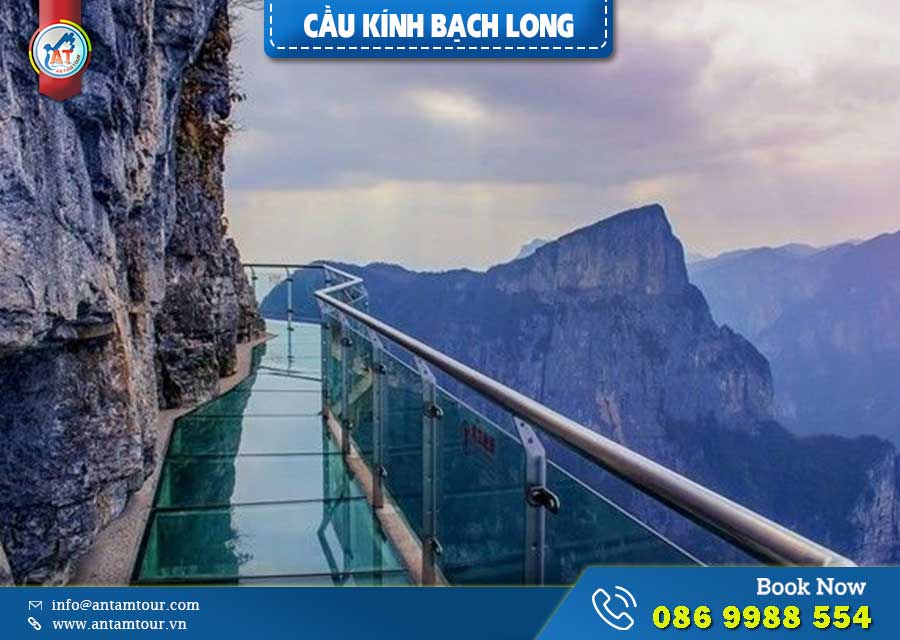 ☑️ Cầu kính: Được bắc qua giữa 2 ngọn núi với tổng chiều dài là 285m, rộng 2,4m với các mảng kính cực lớn 2,4m x 3m. Áp dụng công nghệ hiệu ứng 9D với 60 hiệu ứng hình ảnh và âm thanh giả lập để tạo cảm giác. Cầu Bạch Long đã được Kuraray - Japan thẩm định theo tiêu chuẩn Quốc tế.
