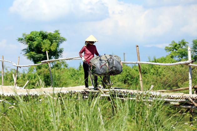 Dù cầu tre thiếu kiên cố nhưng tiện hơn, nhanh hơn việc đi đò nên người dân nơi đây góp tiền, góp sức làm cầu để đi lại kiếm kế sinh nhai hàng chục năm nay. Lúc gặp khó khăn trong khi mang vác nặng qua cầu họ thường giúp đỡ lẫn nhau.