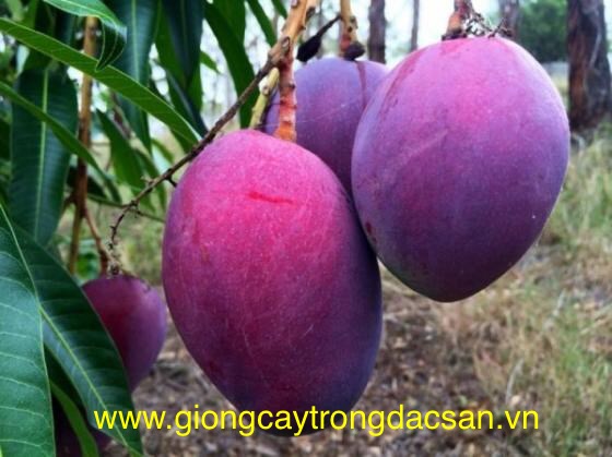 Giống xoài tím ngắt lạ mắt này được nhân giống thành công từ Trung tâm Chuyển giao công nghệ nông nghiệp Thái Lan, có nguồn gốc từ một loại xoài của Đài Loan. Loại xoài này khi chưa chín có màu xanh lá giống như nhiều loại xoài khác, khi chín quả dần chuyển sang tím vô cùng lạ mắt, ruột xoài có màu vàng sậm, vị ngọt mát và thơm. Đây là loại xoài mới nên được rất nhiều người tìm mua vì lạ mắt, lạ miệng. Một quả xoài khi chín có thể đạt trọng lượng 0,8-1,2 kg, có thể chế biến thành nhiều món ăn hoặc ăn chín. Đây là một trong số các loại hoa quả giàu caroten nhất, chất này sẽ biến đổi thành vitamin A trong quá trình hấp thụ ở ruột non. Theo các nghiên cứu, xoài chứa lượng chất sắt gấp 3 lần so với những hoa quả khác. Chính vì thế, xoài rất tốt cho phụ nữ mang thai và những người thiếu máu.