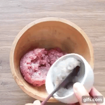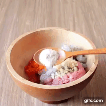 - Nêm ½ muỗng gia vị rồi dùng tay trộn cho thật nhuyễn (nhớ mang bao tay thực phẩm bạn nhé).