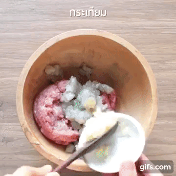 - Đầu tiên bạn cho thịt xay vào một cái bát nhỏ rồi cho phần tôm vào.