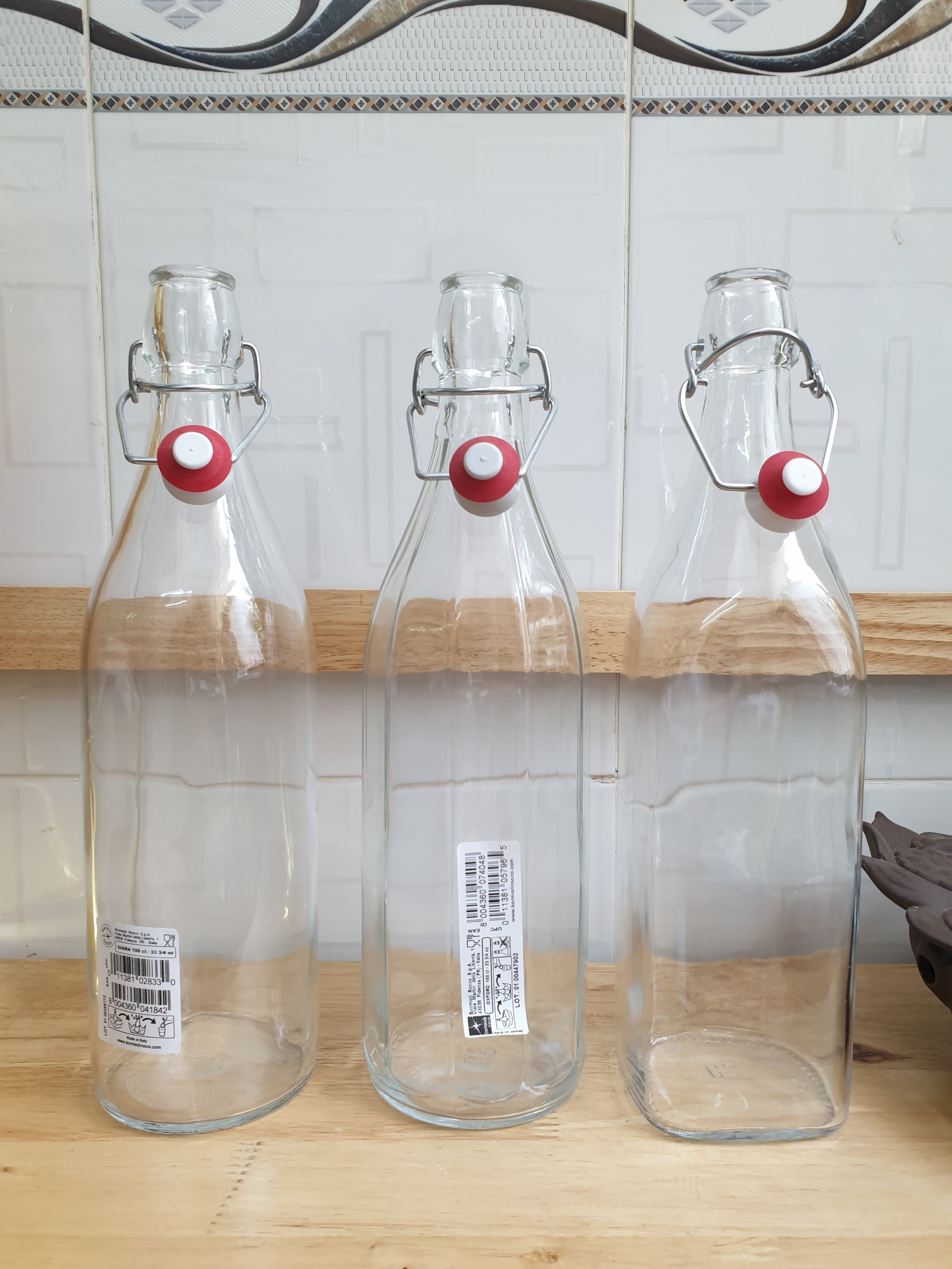 [Hỏa Tốc] Chai Thủy Tinh Vuông Nắp Cài Swing 1L (Bormioli Rocco)