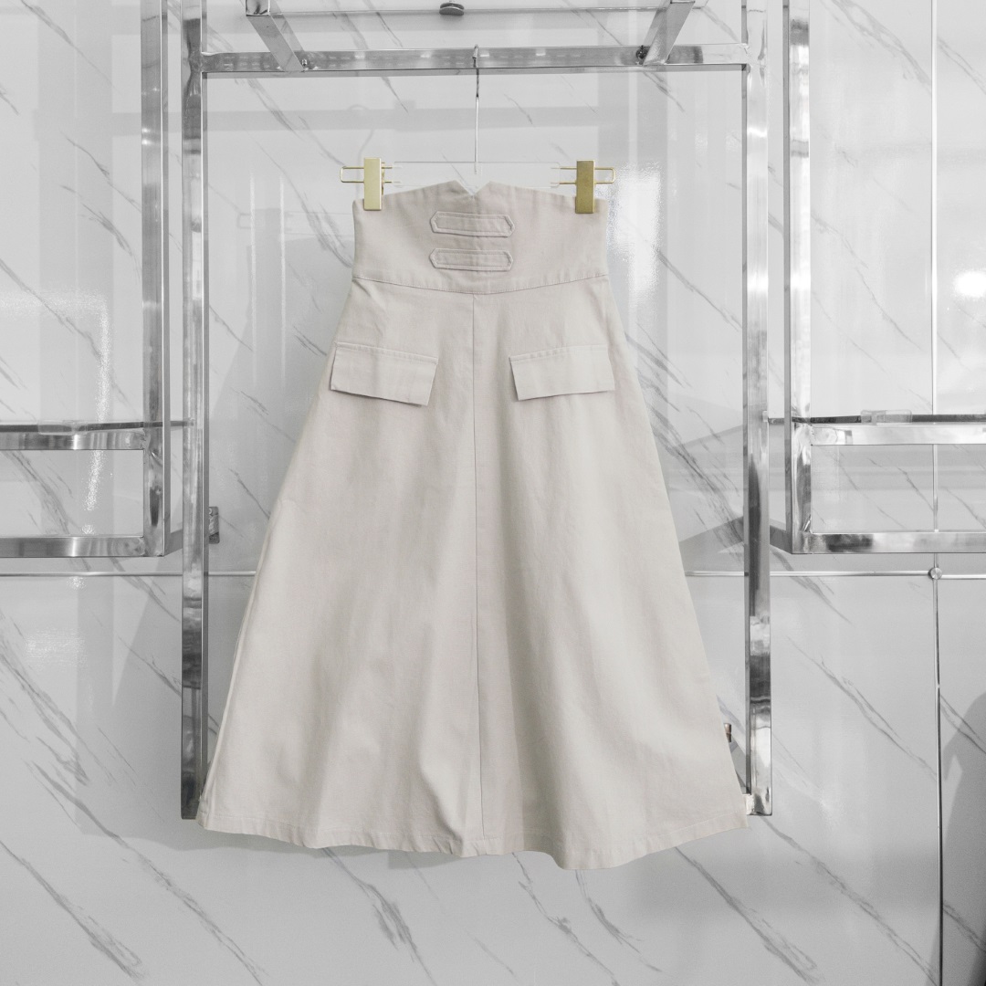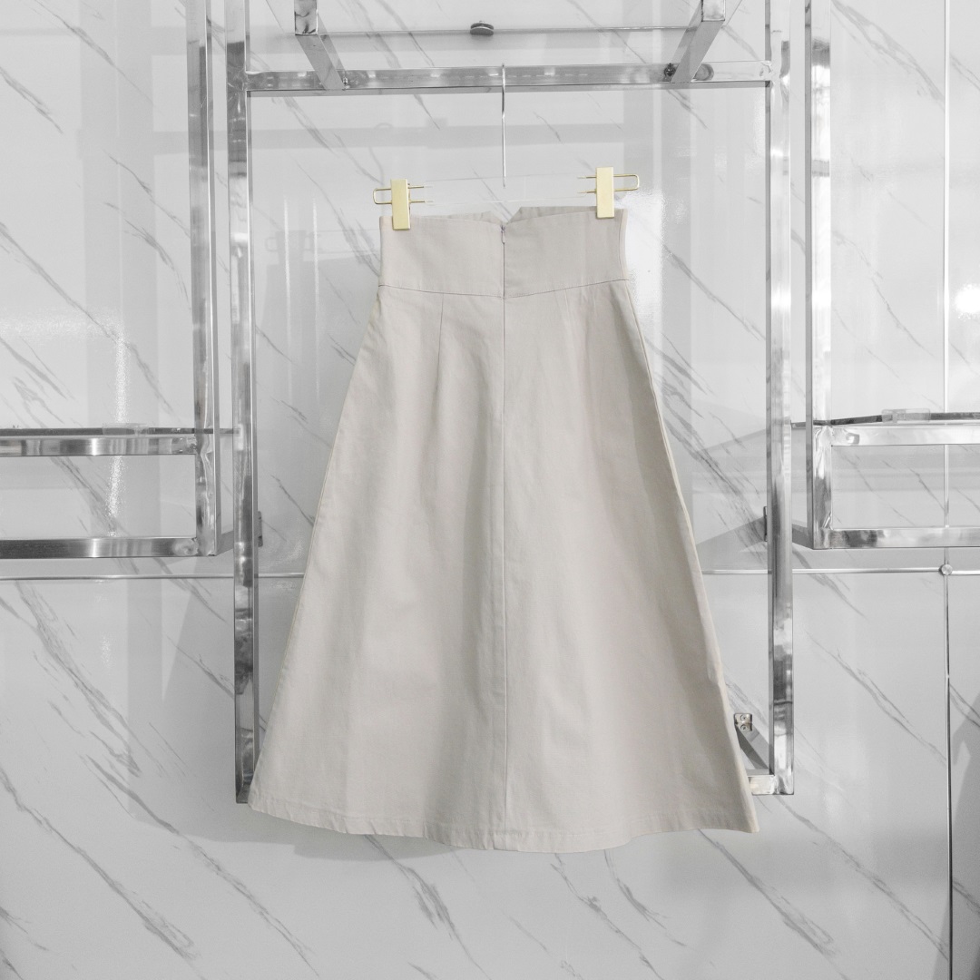 Chân Váy Lưng Cao Chữ V Màu Kem | - Mặc Là Sang