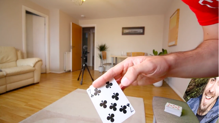 Theo Mike Boyd, bạn cần sử dụng ngón trỏ và ngón giữa để cầm lá bài, giống như hình ảnh trên đây. Hãy lia bài một cách nhẹ nhàng và tập trung hơn thông qua những ngón tay. Như vậy, lá bài sẽ bay nhanh hơn và chính xác hơn. Kết quả của việc luyện tập được thể hiện ngay lập tức, một lá bài được Mike Boyd phi đã găm thẳng vào quả táo.