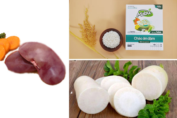 Cho cật lợn và củ cải vào cháo đã chín, đun sôi thêm khoảng 2-3 phút.