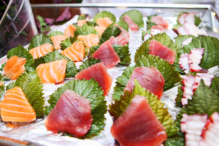 Không chỉ có nước sốt ướp thịt và nước lẩu thơm ngon, bạn sẽ được thỏa thích lựa chọn các loại Sushi được đầu bếp thao tác thực hiện tại quầy Buffet. Có tới gần 20 loại sushi tất thảy, nào là Sushi hoa anh đào, Sushi California, Sushi trứng tôm, trứng cá hồi, trứng cua…. Tất cả sẽ thỏa mãn cơn nghiện, nỗi thèm sushi của thực khách đáng mến của chúng tôi.