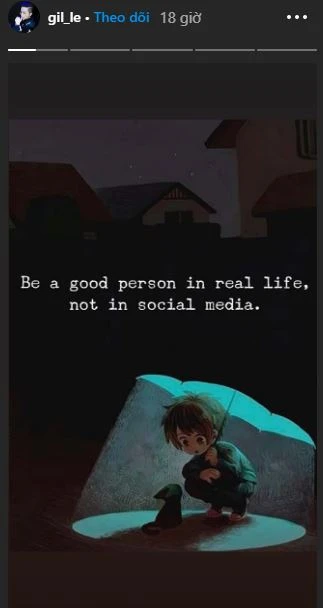 Không lâu sau đó, Gil Lê cũng đăng tải một story đầy ẩn ý lên story Instagram cá nhân. Ảnh: Gil Le