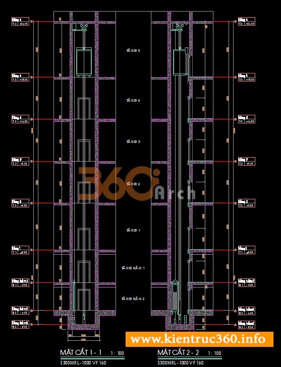 Kiến trúc 360 xin giới thiệu 2 bản vẽ chi tiết autocad về thang máy và thang cuốn.1- Thang máy gồm:- Hố thang