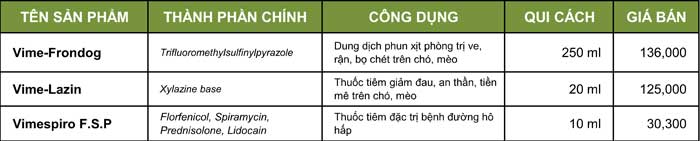 Chi tiết từng sản phẩm thuốc thú y Vemedim
