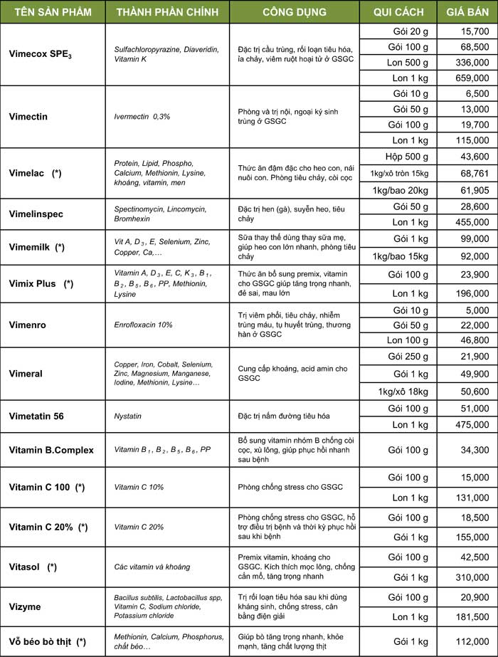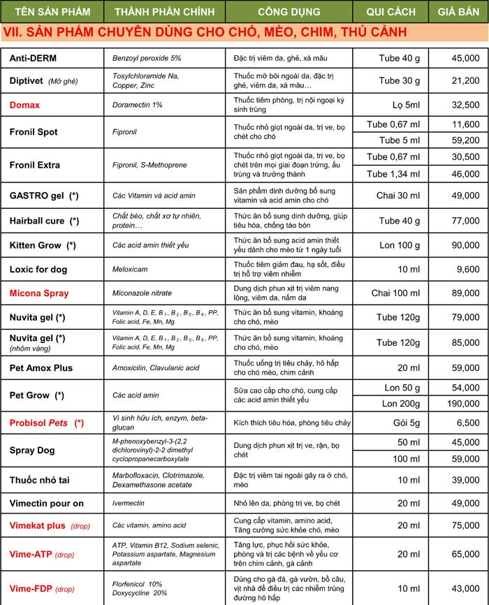Chi Tiết Bảng Giá Thuốc Thú Y Vemedim Phần 1