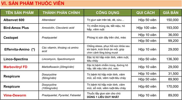 Hình ảnh bảng giá thuốc thú y Vemedim - thuốc viên