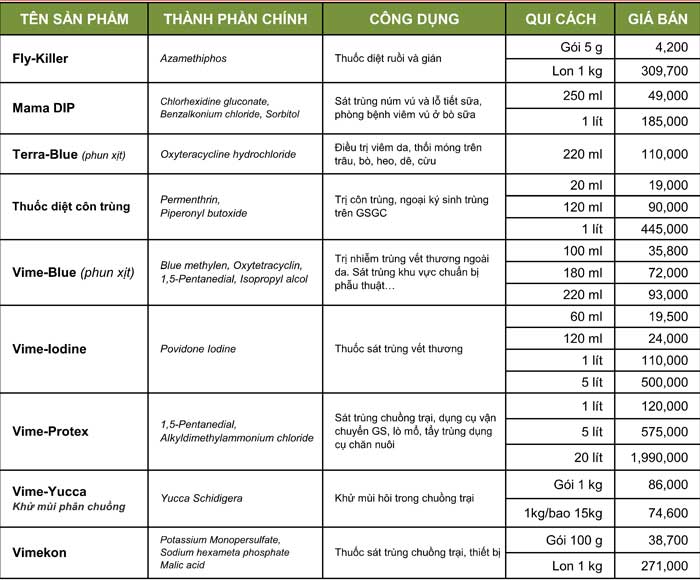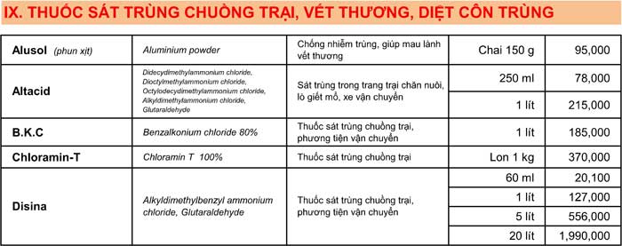 Hình ảnh bảng giá thuốc thú y Vemedim - thuốc sát trùng chuồng trại