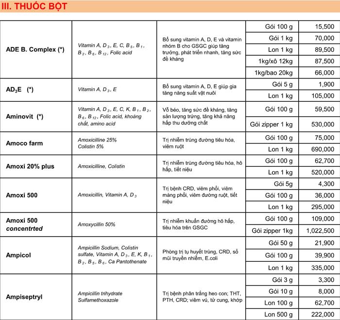 Hình ảnh bảng giá thuốc thú y Vemedim - thuốc bột