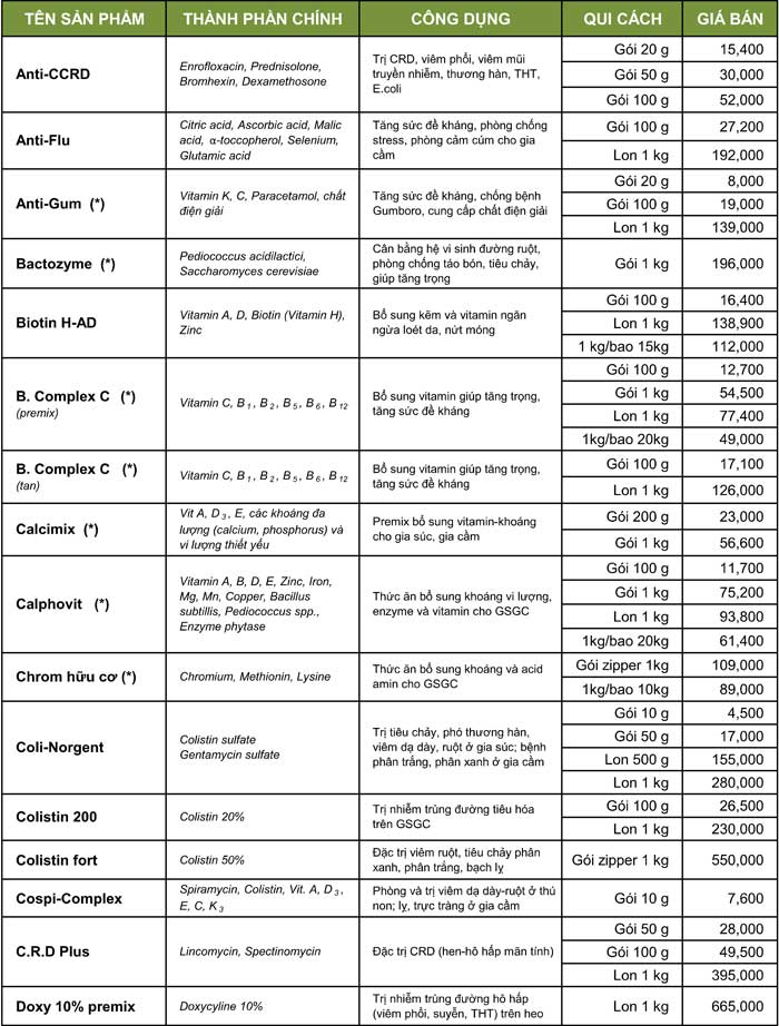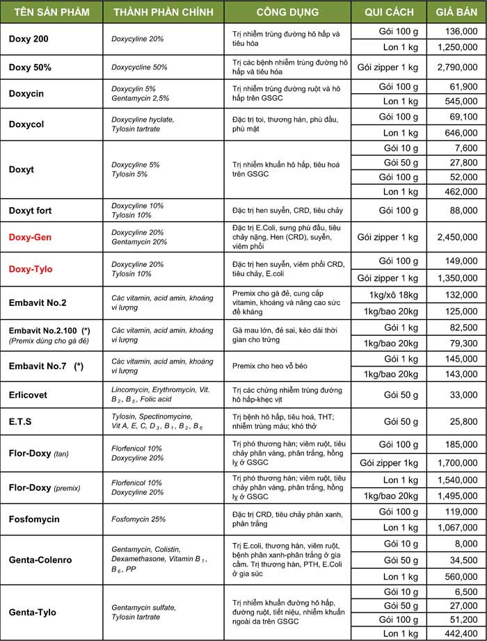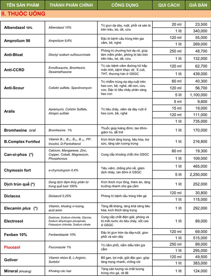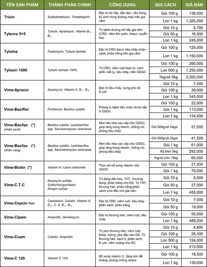 Chi Tiết Bảng Giá Thuốc Thú Y Vemedim Phần 2