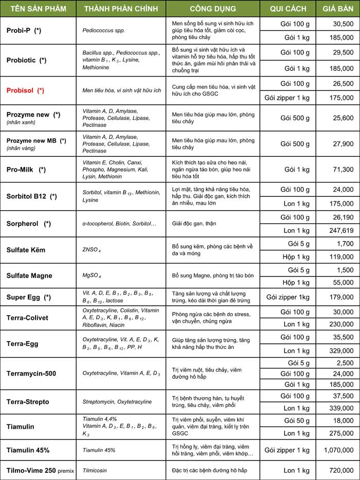 Bảng Giá Công Ty CP SXKD Vật Tư Và Thuốc Thú Y (VEMEDIM)