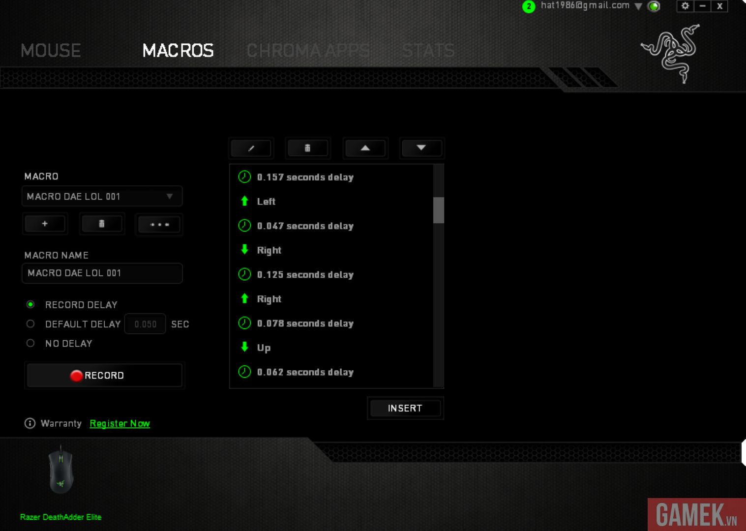 Tiếp theo, ở mục Macro, đây là nơi mà người sử dụng có thể tạo lệnh macro dùng cho các combo cần phải nhấn nhiều nút phím hoặc nút chuột trong một khoảng thời gian ngắn, đảm bảo sự chính xác khi thi triển các skill cần sự phản ứng nhanh trong game, cụ thể là những game MOBA như League of Legends hay DotA 2...![]()