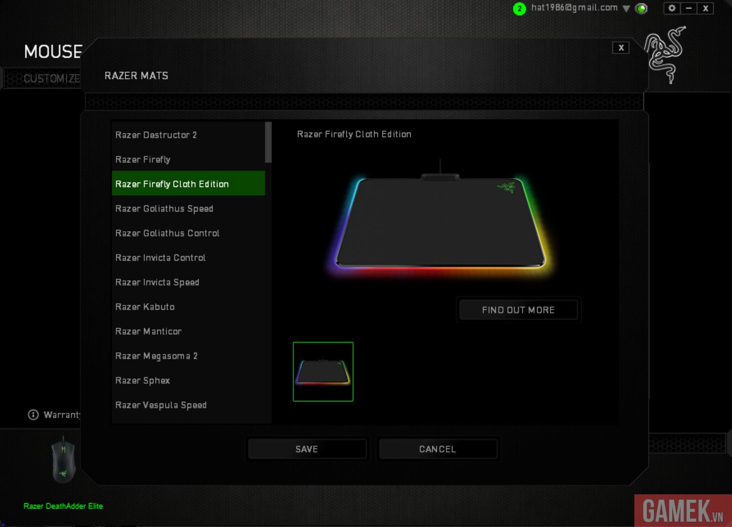 Trong phần danh mục, Razer liệt kê đầy đủ các loại mousepad của họ. Nếu người dùng sử dụng loại pad khác, thì lựa chọn Others ở phần bên dưới có thể add từng loại mousepad vào danh mục này. Có điều, người dùng lại đa phần lại thích tự tùy chỉnh mức LOD bằng tay hơn là để tự động nhận diện.