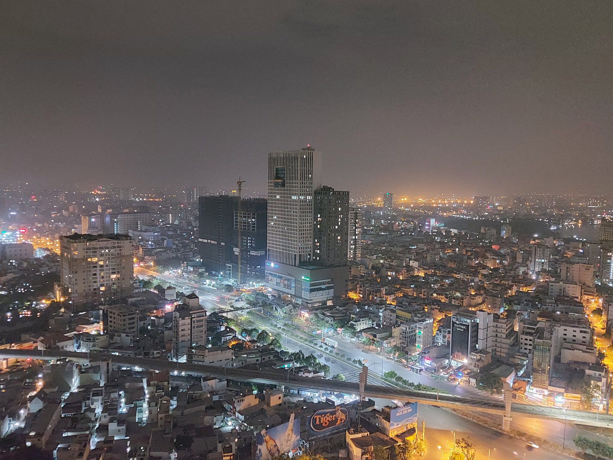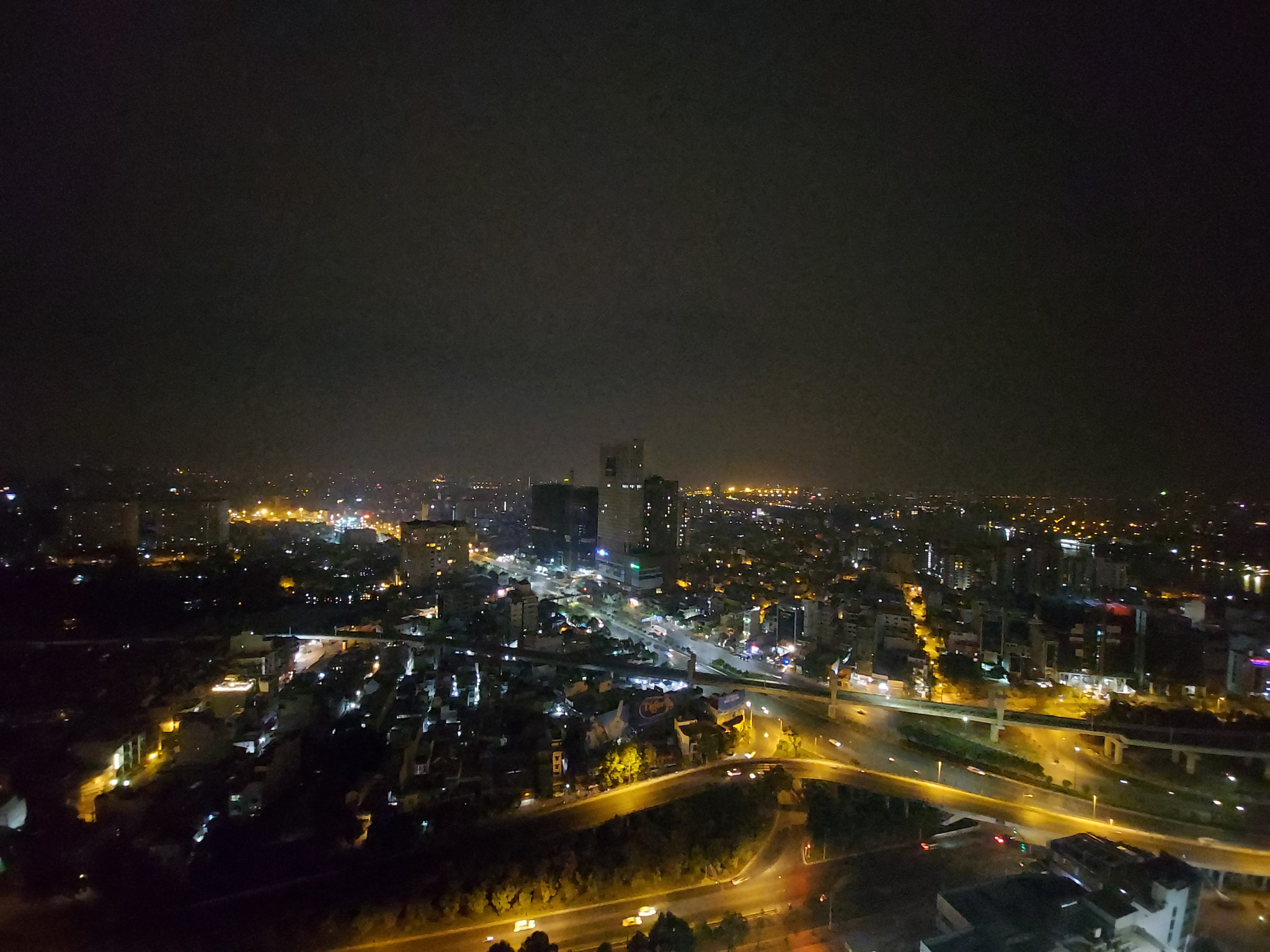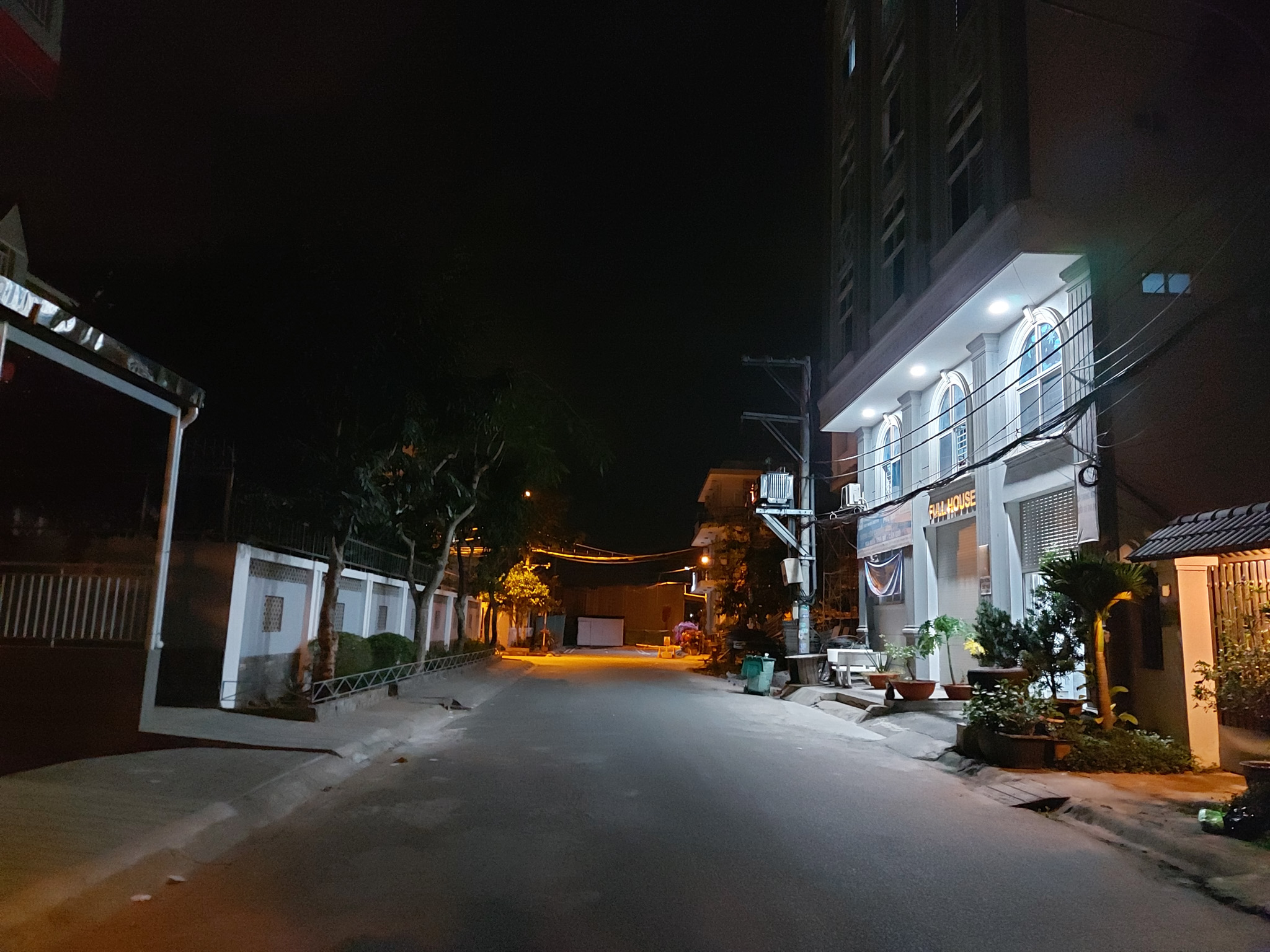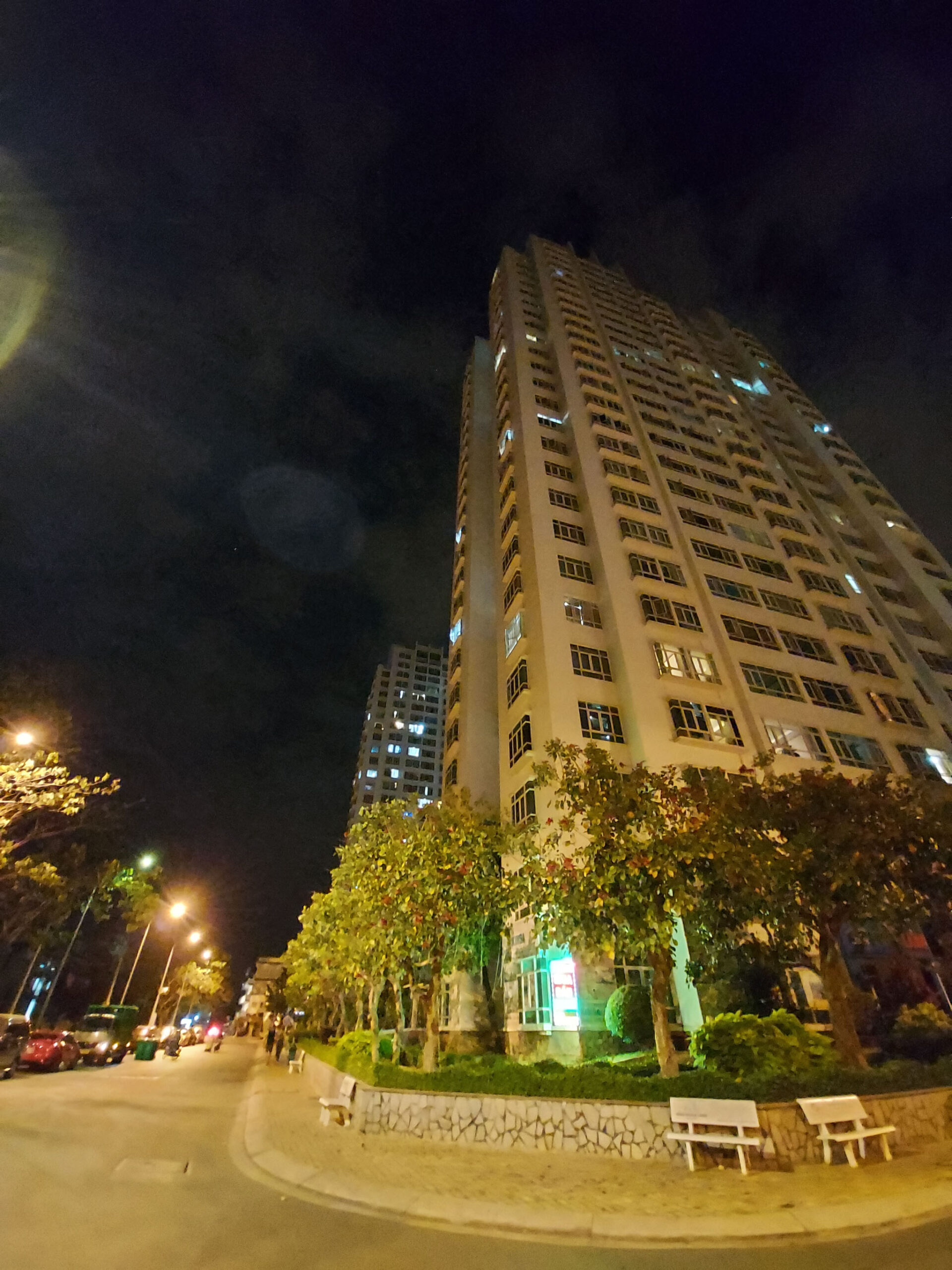 Thêm một khung cảnh nữa để bạn có thể thấy được khả năng xử lý của Galaxy A71. Nhìn vào bức ảnh chụp live view phía dưới, dễ dàng nhận ra bối cảnh lúc này đã sáng hơn nhờ ánh đèn đường và đèn của các khu nhà hắt ra. Nhưng nguồn sáng không đều, có khu vực bị cháy sáng không rõ chi tiết.