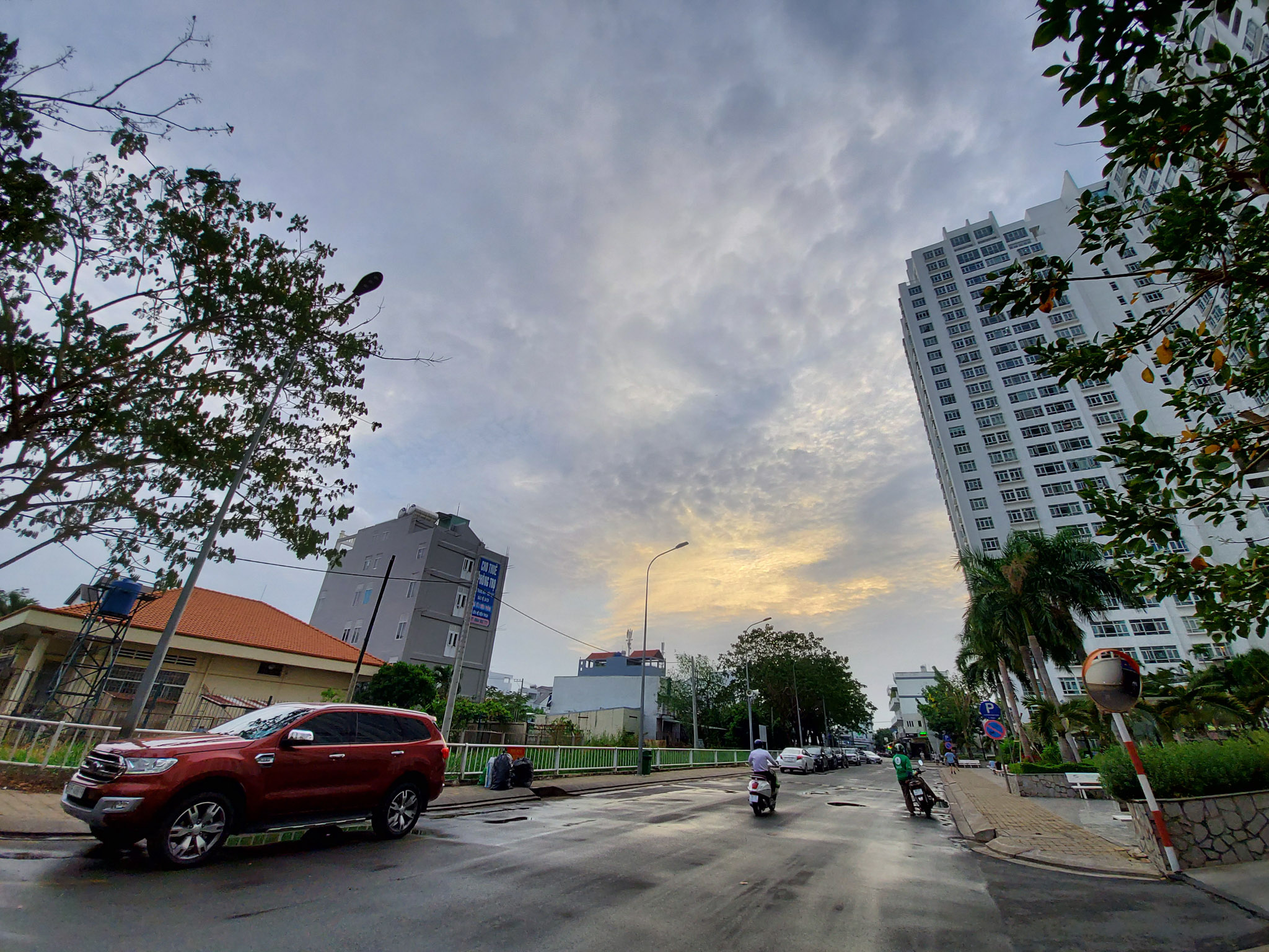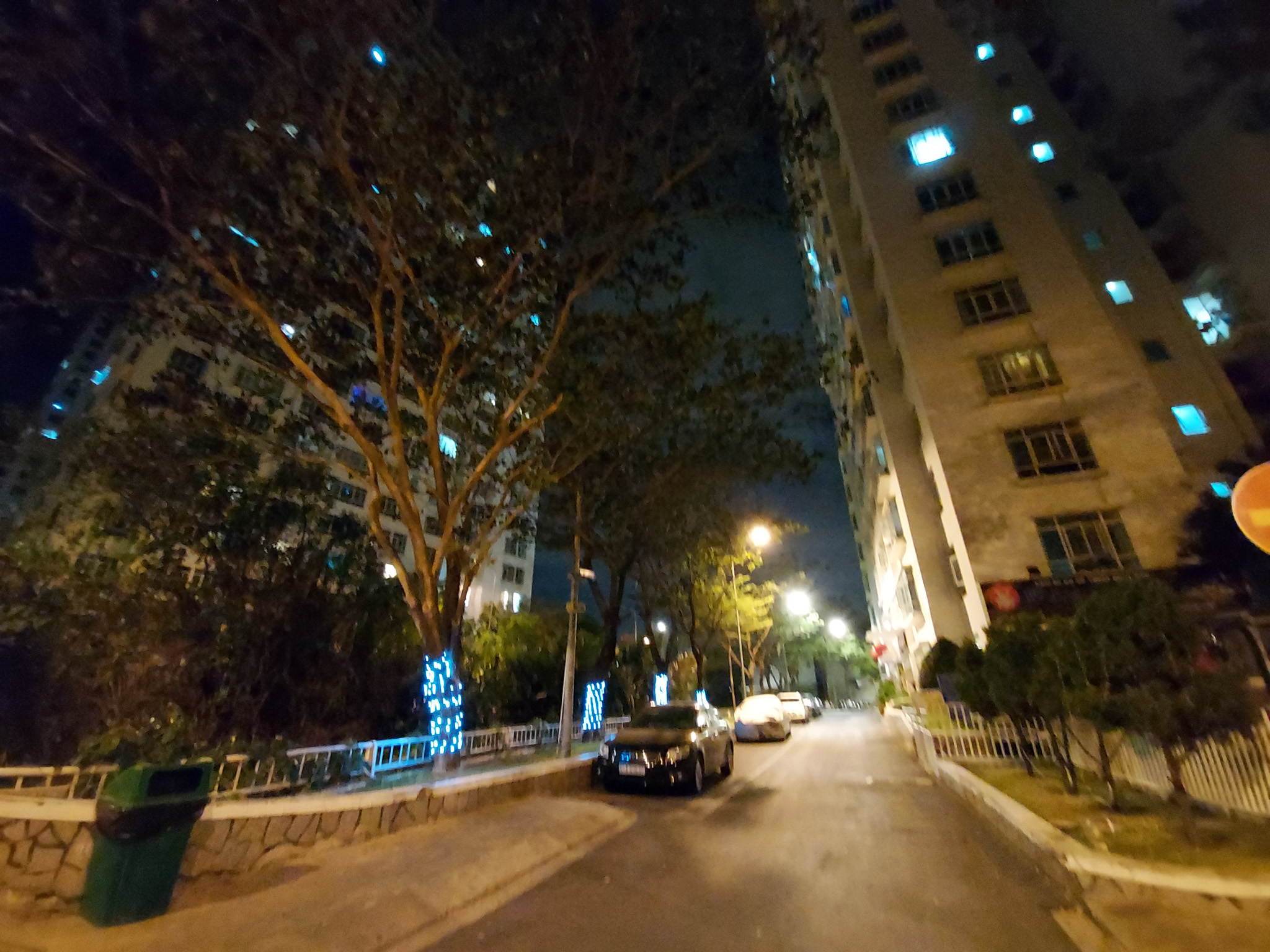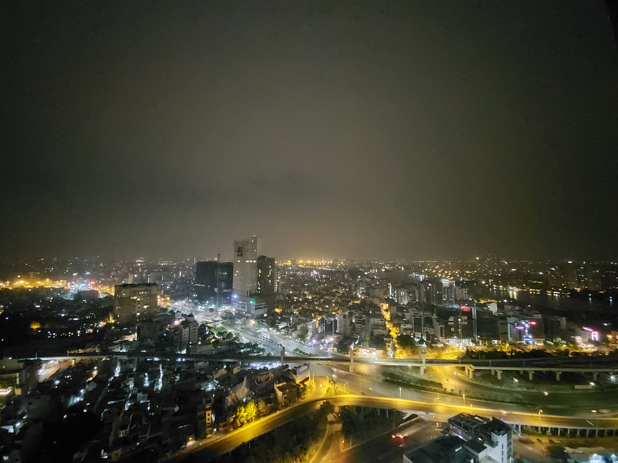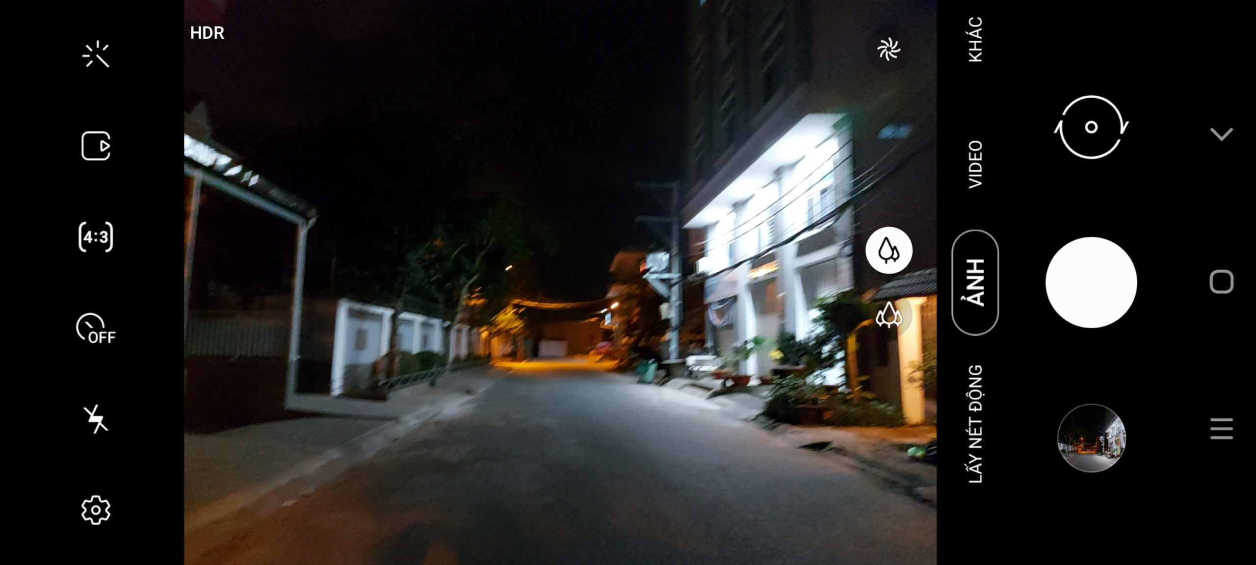 Thêm một khung cảnh nữa để bạn có thể thấy được khả năng xử lý của Galaxy A71. Nhìn vào bức ảnh chụp live view phía dưới, dễ dàng nhận ra bối cảnh lúc này đã sáng hơn nhờ ánh đèn đường và đèn của các khu nhà hắt ra. Nhưng nguồn sáng không đều, có khu vực bị cháy sáng không rõ chi tiết.