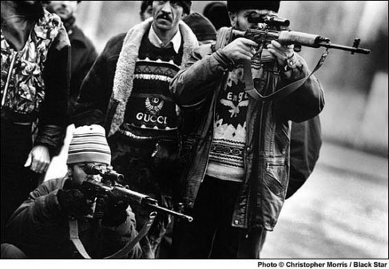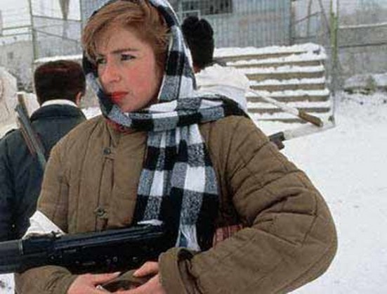 Các xạ thủ bắn tỉa của Chechnya. Trên tường có ghi vài câu chửi đặc nhiệm OMON của Nga