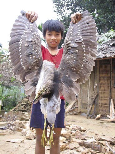 Đám thợ săn giàu có đỗ xe, khoác súng hơi 12kg, súng tự chế bắn đạn hoa cải loại đạn lớn. Họ ngụy trang bằng lá lẩu khắp mình, rồi bơi ra mặt đầm. Súng của họ đạn ria bắn thành vòm tròn, một lần xiết cò có thể giết chết cả một bầy chim, bắn trượt khó hơn bắn... trúng.