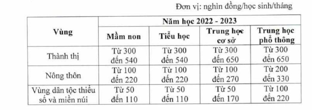 Từ năm học 2023 - 2024 trở đi, khung học phí được điều chỉnh theo tỷ lệ phù hợp với điều kiện kinh tế xã hội của địa phương, tốc độ tăng chỉ số giá tiêu dùng, tốc độ tăng trưởng kinh tế năm và khả năng chi trả của người dân nhưng không quá 7,5%/năm.