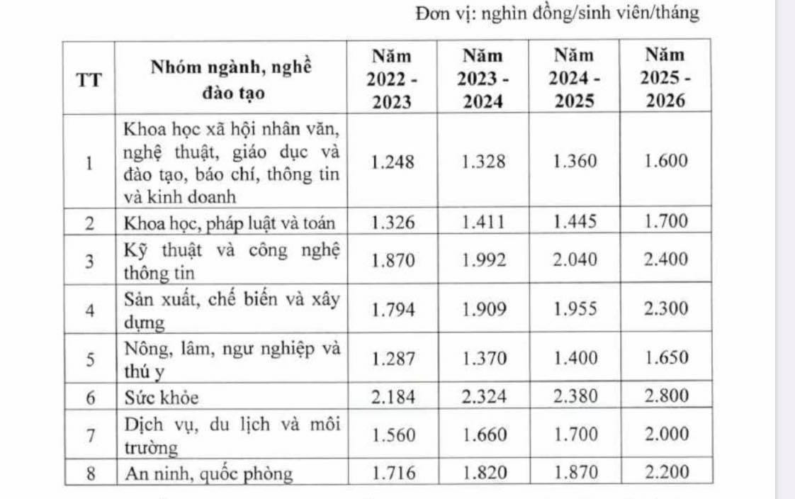 Đây là mức học phí đối với cơ sở giáo dục nghề nghiệp công lập chưa đảm bảo chi thường xuyên.