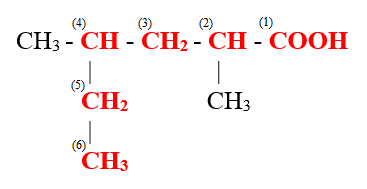 → Tên gọi là: Axit 2,4-đimetyl hexanoic.