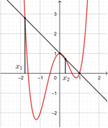 \(h'\left(x\right)=0\Leftrightarrow f'\left(x\right)=-x+1\Leftrightarrow \left[\begin{array}{c} {x=x_{1} \, \, \, (x_{1} <0)} \\ {x=0} \\ {x=x_{2} \, \, (0<x_{2} <1)} \\ {x=1} \end{array}\right. \) (hình vẽ)