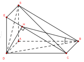 A. \(\sin \alpha =\frac{\sqrt{2}}{4}\). B. \(\sin \alpha =\frac{\sqrt{3}}{5}\). C. \(\sin \alpha =\frac{\sqrt{7}}{8}\). D. \(\sin \alpha =\frac{\sqrt{3}}{2}\). Giải chi tiết: Dựng hình chữ nhật ADES. Kẻ DH vuông góc EC. Do ES//AD, AD// BC\(\Rightarrow \) ES // BC \(\Rightarrow S,E,B,C\) đồng phẳng. Ta có: \(\left\{ \begin{align} BC\bot CD \\ BC\bot ED \\ \end{align} \right.\) (vì SA // ED, \(SA\bot (ABCD)\)) \(\Rightarrow BC\bot (CDE)\Rightarrow BC\bot DH\) Mà \(DH\bot EC\Rightarrow DH\bot (SBCE)\) hay \(DH\bot (SBC)\). \(\Rightarrow \left( \widehat{BD;(SBC)} \right)=\left( \widehat{BD;BH} \right)=\widehat{HBD}\) ABCD là hình chữ nhật\(\Rightarrow BD=\sqrt{B{{C}^{2}}+A{{B}^{2}}}=\sqrt{3{{a}^{2}}+{{a}^{2}}}=2a,\,\,CD=AB=a\) SADE là hình chữ nhật \(\Rightarrow ED=SA=a\) Tam giác ECD vuông cân tại D, DH là đường cao \(\Rightarrow DH=\frac{DE}{\sqrt{2}}=\frac{a}{\sqrt{2}}\) Tam giác DHB vuông tại H \(\Rightarrow \sin \widehat{HBD}=\frac{DH}{DB}=\frac{\frac{a}{\sqrt{2}}}{2a}=\frac{1}{2\sqrt{2}}=\frac{\sqrt{2}}{4}\Rightarrow \sin \alpha =\frac{\sqrt{2}}{4}\) Chọn: A Giải phương trình 31 – x – 3x + 2 = 0. câu 2 Trong không gian với hệ trục Oxyz, cho mặt phẳng (P): 2x + y + 2z + 4 = 0, đường thẳng d: Giải phương trình : z3 + i = 0 Giải phương trình 72x + 1 – 8.7x + 1 = 0. Giải phương trình: (sin2x + cos2x)cosx + 2cos2x - sinx = 0 câu 7 Tìm số nguyên dương n nhỏ nhất sao cho z1 = Giải phương trình (1 – i)z + (2 – i) = 4 – 5i trên tập số phức. Câu 2: Đề thi thử THPT Hà Trung - Thanh Hóa Đáp án đúng: A