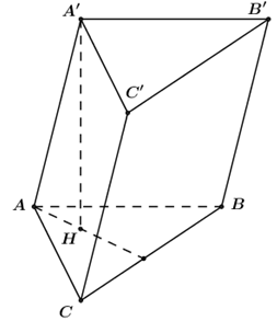 Gọi \(H\) là hình chiếu của \({A}'\) trên mặt phẳng \(\left( ABC \right)\)\(\Rightarrow \,\,{A}'H\bot \left( ABC \right).\)