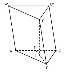 Gọi \(BG \cap AC = \left\{ N \right\} \Rightarrow BG = BB'.\cos 60 = \dfrac{a}{2},BN = \dfrac{3}{2}BG = \dfrac{{3a}}{4}\)