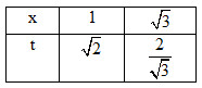Nhận biếtCho tích phân \(I = \int \limits_1^{ \sqrt 3 } {{{ \sqrt {1 + {x^2}} } \over {{x^2}}}dx} \). Nếu đổi biến số \(t = {{ \sqrt {{x^2} + 1} } \over x} \) thì: