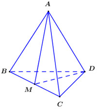 Gọi \(M\) là trung điểm của \(BC\). Do tam giác \(ABC,\,\,DBC\) đều \( \Rightarrow \left\{ \begin{array}{l}AM \bot BC\\DM \bot BC\end{array} \right.\).