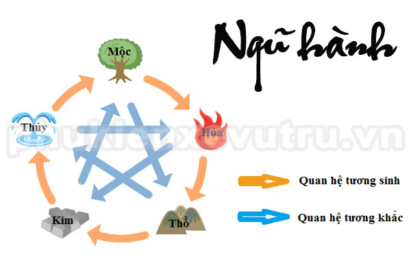 Trong phong thủy, thế giới xoay quanh 5 yếu tố: kim, mộc, thủy, hỏa, thổ tương ứng với các nguyên tố: kim loại, cây cối, nước, lửa và đất. Các yếu tố này tạo là 1 vòng tuần hoàn khép kín thường gọi là ngũ hành. Tất cả mọi thứ sẽ xoay quanh ngũ hành này.