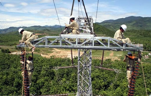 | Công nhân Cty Truyền tải điện 2 bảo dưỡng đường dây 500kV. |