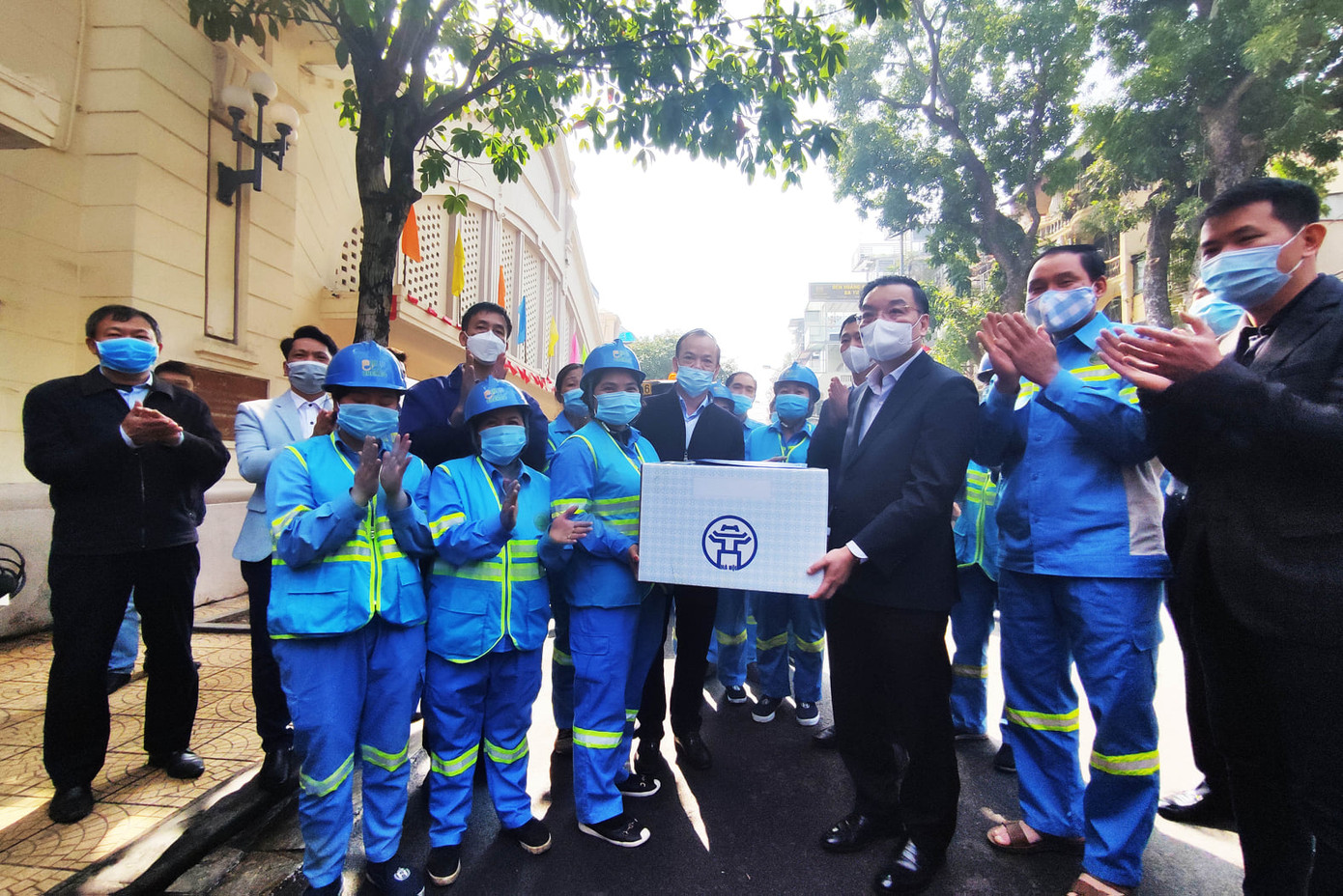 Cũng trong sáng nay, Chủ tịch UBND thành phố Chu Ngọc Anh đã đến động viên, tặng quà và mừng tuổi các công nhân Tổ sản xuất số 7, chi nhánh Hoàn Kiếm của Cty TNHH MTV Môi trường Đô thị Hà Nội (Urenco) làm việc tại khu vực chợ Đồng Xuân (quận Hoàn Kiếm).