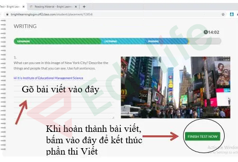 Viết (Writing): Gồm 01 câu hỏi theo chủ đề với thời gian làm bài là 15 phút.