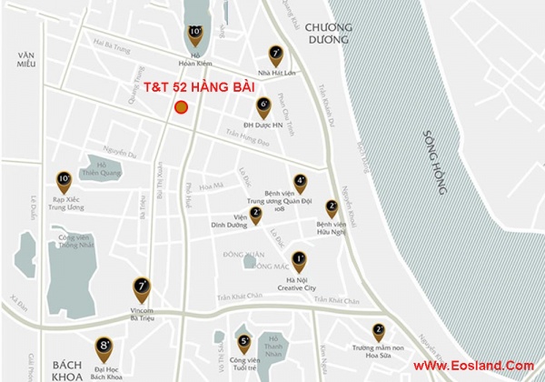 Với vị trí ngay nơi giao thoa của hai con đường sầm uất Hàng Bài và Lý Thường Kiệt, chung cư T&T 52 Hàng Bài nhanh chóng hoà nhập vào cuộc sống nhộn nhịp thường ngày của 36 phố phường, của Hồ Gươm, Nhà hát Lớn … khi chỉ vừa bước chân ra khỏi tòa nhà.