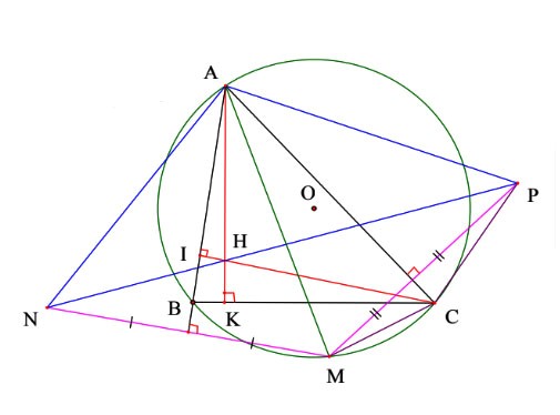 \(\Rightarrow \widehat{NAP} = 2\left( \widehat{BAM} + \widehat{MAC} \right) = 2\widehat{BAC}\) không đổi
