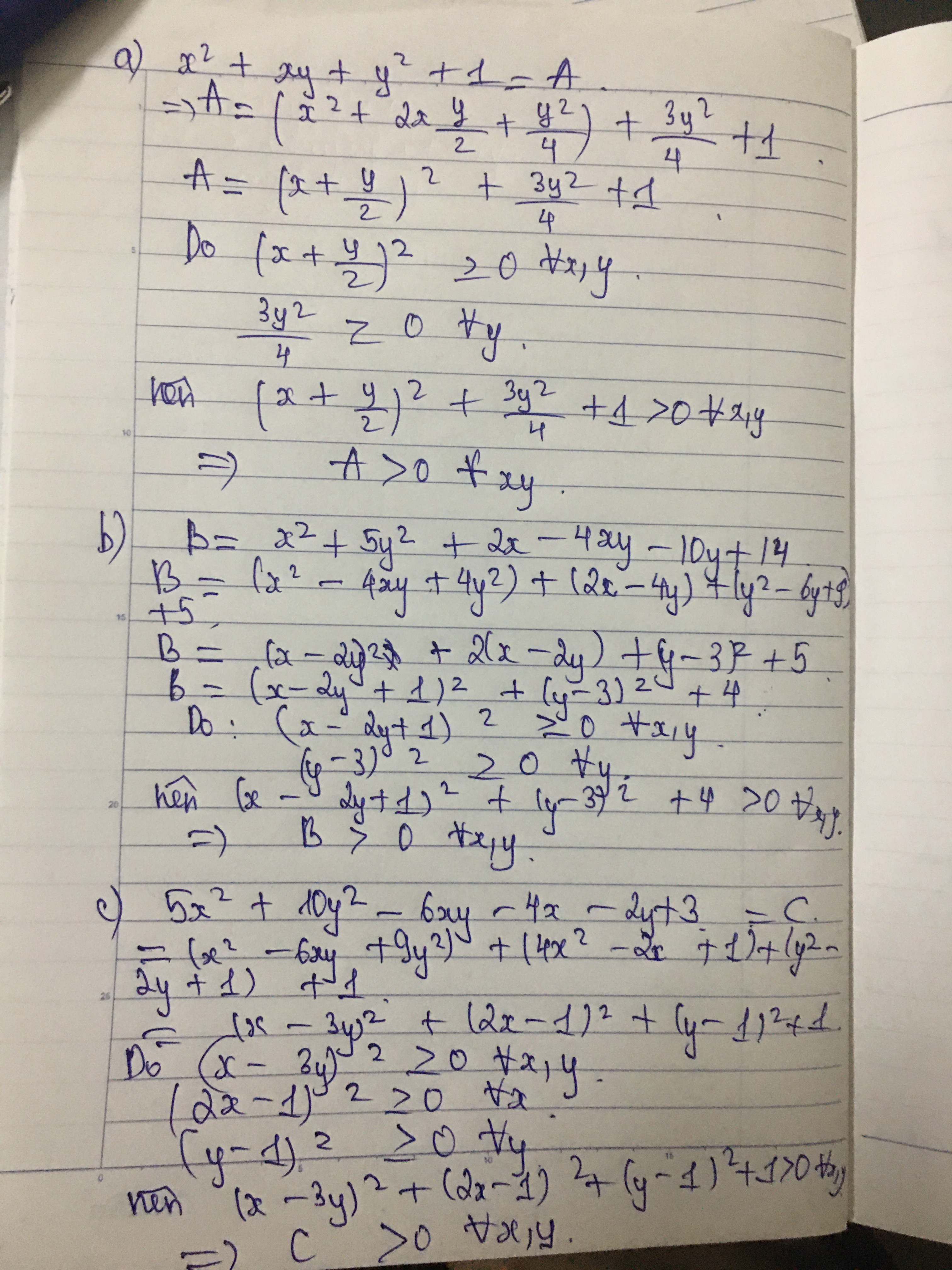 Chứng Minh Các Biểu Thức Sau > 0 Vs Mọi Giá Trị Của Biến :1) X^2+xy ...