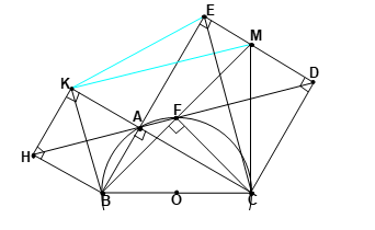 + Xét tam giác AKE có KH vuông góc với AE và AH = HE nên tam giác AKE cân tại K. Suy ra AK = KE (tính chất)