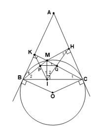 \(\frac{MI}{MH}\ = \ \frac{MK}{MI}\) => MI2 = MH.MK.