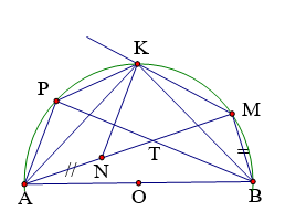Bài 5: Cho nửa đường tròn (O) đường kính AB và K là điểm chính giữa của cung AB. Trên cung AB lấy một điểm M (khác K; B). Trên tia AM lấy điểm N sao cho AN = BM. Kẻ dây BP song song với KM. Gọi Q là giao điểm của các đường thẳng AP, BM.