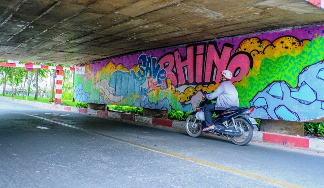 | Những bức tranh graffiti mang thông điệp về việc bảo vệ tê giác trên nhiều đường phố Sài Gòn |