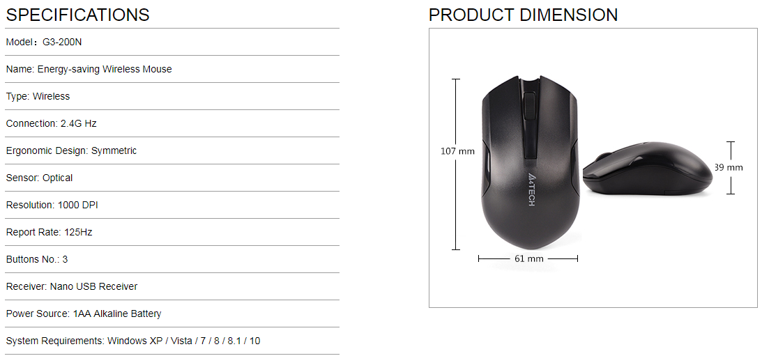 Chuột Không Dây A4Tech G3-200N 1000 DPI Wireless 2.4GHz ...