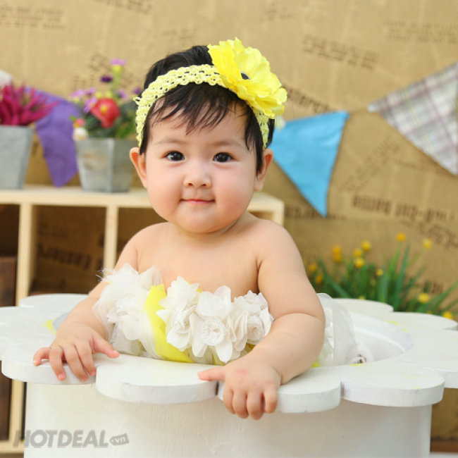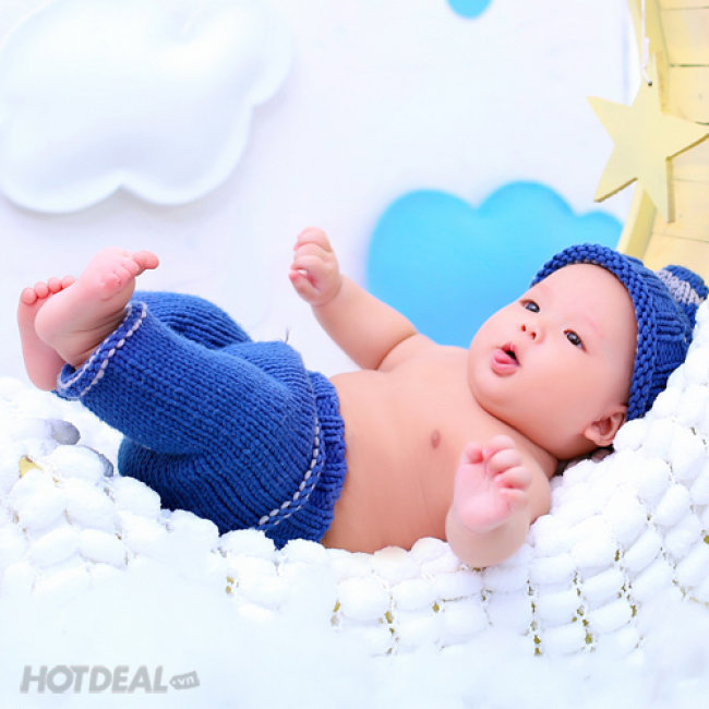 - Chi tiết dịch vụ: + 01 tờ lịch 30 x 50 cm ép lụa + sáo trúc 2 đầu. + In 05 ảnh 13 x18cm đã được chỉnh sửa, in tráng UV + Có tối đa 2 ảnh bé chụp cùng gia đình (trong gia đình tối đa 5 người chụp cùng). + Bé được chụp từ 120 đến 200 file ảnh, tùy thuộc vào diễn xuất của bé. +Bé được thay 3 – 4 bộ quần áo, 3 - 4 bối cảnh khác nhau. + Bé được chụp hình chung với ba mẹ 01 bối cảnh (tối đa có 02 ảnh bé được chụp chung với ba mẹ). + Khách hàng mang USB đi để copy file (file chọn in, được chỉnh sửa, resize 1080x1080 mp), hoặc gửi email. + Hỗ trợ trang phục cho bé từ 3 tháng đến 5 tuổi và studio trang bị miễn phí các phụ kiện như hoa, gấu, ô...
