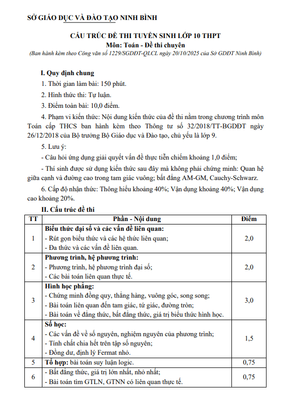 Đề tham khảo tuyển sinh lớp 10 môn Toán (chuyên) năm 2026 – 2027 sở GD&ĐT Ninh Bình 21/01/2026
